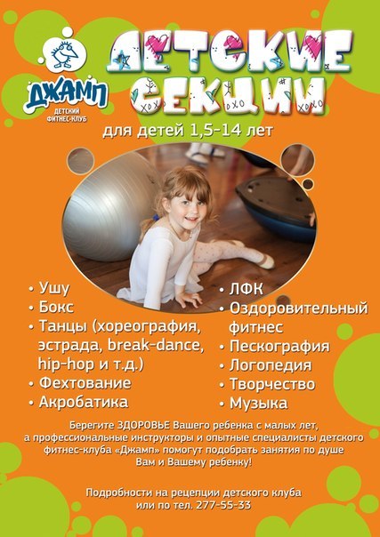 Детские секции для детей от 1,5 до 14 лет!